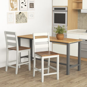 Set of 2 Folding Kitchen Island Stool with Rubber Wood Legs-Brown – Color: Brown