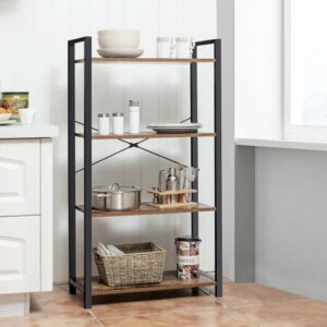 4-Tier Rustic Bookshelf Industrial Bookcase Diaplay Shelf Storage Rack-Brown – Color: Brown
