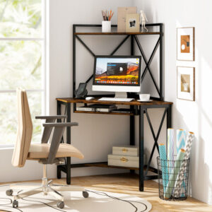 Space-Saving Corner Computer Desk with with Hutch and Keyboard Tray-Rust Brown – Color: Rustic Brown