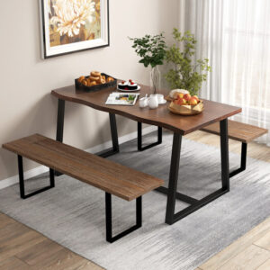 63″ Large Dining Table with Wavy Edge and Heavy-duty Metal Frame-Coffee – Color: Coffee