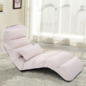 Folding Lazy Sofa Chair Stylish Sofa Couch Beds Lounge Chair W/Pillow-Beige – Color: Beige