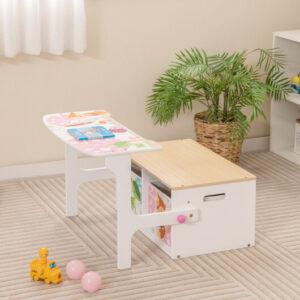 3 in 1 Kids Convertible Activity Bench with 2 Removable Fabric Bins-White – Color: White