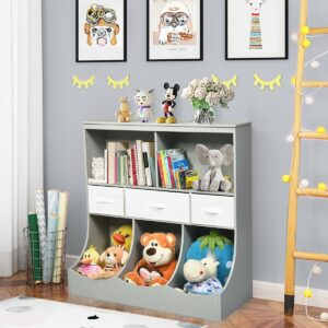 Freestanding Combo Cubby Bin Storage Organizer Unit W/3 Baskets-Gray – Color: Gray