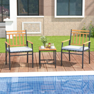 3 Pieces Outdoor Furniture Set Acacia Wood Patio Conversation Set with Cushions-White – Color: White