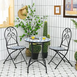 3 Pieces Patio Bistro Furniture Set with Mosaic Design – Color: Black