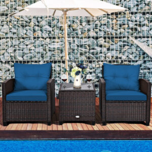 3 Pieces Rattan Patio Furniture Set with Washable Cushion-Peacock Blue – Color: Peacock Blue