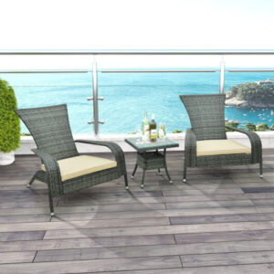 3-Piece Wicker Adirondack Set with Comfy Seat Cushions-Gray – Color: Gray
