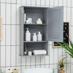 Bathroom Wall Mount Storage Cabinet Single Door with Height Adjustable Shelf-Gray – Color: Gray