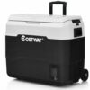 With large storage capacity and good sealing this 10 gallon no-need-plug-in ice cooler can keep your drinks cool for more than 24 hours making it a useful companion for BBQ family gathering camping fishing and more. Meanwhile you can use it as a cocktail side table or a stool to make your outdoor activities more convenient. Besides the compact cooler weighs only 8 lbs and is designed with built-in handles so you can easily carry it anywhere you go. Furthermore the PP material has great durability and water-resistance allowing you to use our ice chest for many years.
