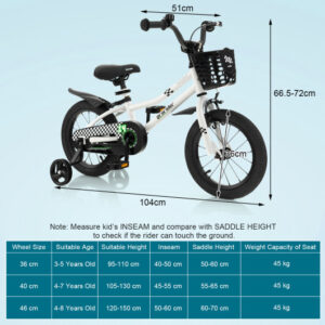 Specifications: Color: White/Navy/Blue/Red/Black & White Material: Carbon Steel PP PVC PP TPR Overall Dimension: 41″ x 20″ x 26″-28.5″ (L x W x H) Handbrake Height: 26″-28.5″ Saddle Height: 20″-24″ Saddle Size: 8.5″ x 5.5″(L x W) Inseam Size:18.5″-22.5″ Suitable Height: 37.5″-43.5″ Suitable Age: 3-5 Years Old Weight Capacity of Seat: 99 lbs Net Weight: 21 lbs
