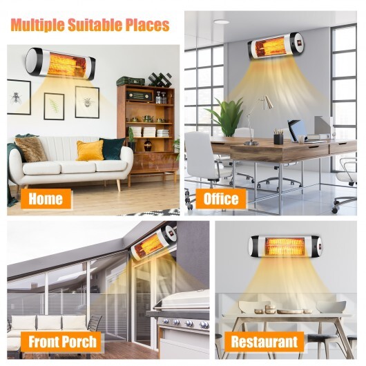 1500W Wall-Mounted Electric Heater Patio Infrared Heater with Remote Control – Color: Black