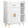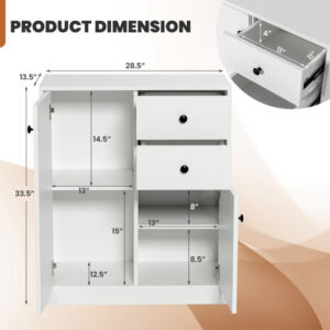 Specifications: Color: White Material: E0 Grade MDF Overall dimension: 28.5″ x 13.5″ x 33.5″ (L x W x H) Inside shelf dimension: 27″ x 12″ Distance between each shelf: 10.5″ 10.5″ 8″ Weight capacity of the top: 110 lbs Weight capacity of each shelf: 44 lbs Net weight: 56 lbs Package includes: 1 x Storage cabinet 1 x User guide