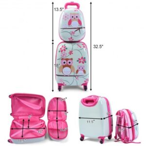 It includes a carry-on suitcase with multi-directional wheels and a lightweight matching backpack. The backpack can be attached to the suitcase with equipped add-on elastic band. With this luggage set your kids can learn to pack and carry their own suitcase which will improve their independence and self-care ability. And it offers adequate storage space for clothes books toys snacks and other items. Besides the suitcase has a side pocket with zipper which is ideal for classified storage. The handle of the suitcase and the shoulder strap of the backpack can be adjusted according to the height and needs of your kids. Made of high quality ABS material and covered with frosted protective film the surface of the suitcase is waterproof abrasion-resistant and shock-resistant. It will make your little one become the focus of attention during travel.