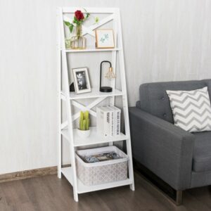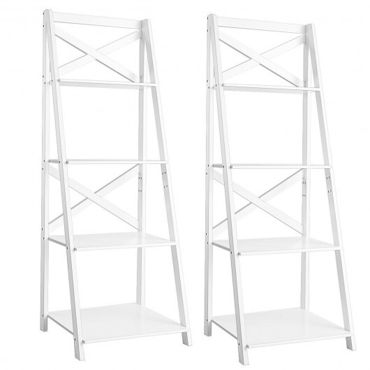 This 4-tier ladder shelf not only provides you with an efficient storage space but also adds a modern touch to the surrounding. Thanks to the use of premium MDF board the whole shelf is eco-friendly and durable at the same time. And with the spray-painted surface the color and texture feel better while remaining waterproof. Besides it’s convenient to assemble as well as maintain.Start organizing your items with the help of this stylish A-shaped bookcase.