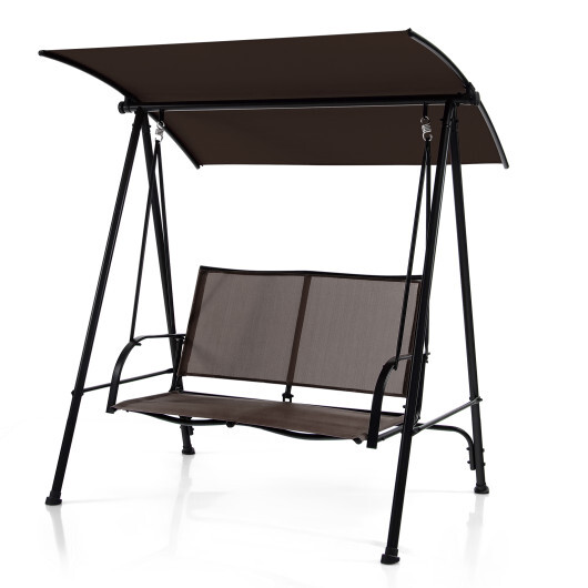 2-Seat Outdoor Canopy Swing with Comfortable Fabric Seat and Heavy-duty Metal Frame-Brown – Color: Brown