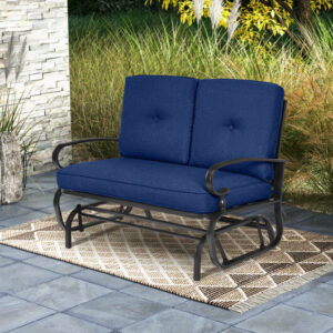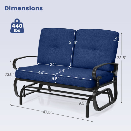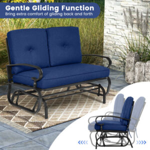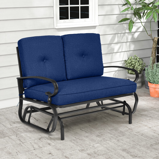 2 Seats Outdoor Swing Glider Chair with Cushions-Navy – Color: Navy