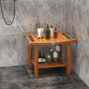Specifications: Color Natural Material Teak Wood + Stainless Steel Product Dimensions 24.5 x 17 x 18.5 inch (L x W x H) Net Weight 15.5 lbs Weight Capacity of Higher Shelve 350 lbs Weight Capacity of Lower Shelve 88lbs