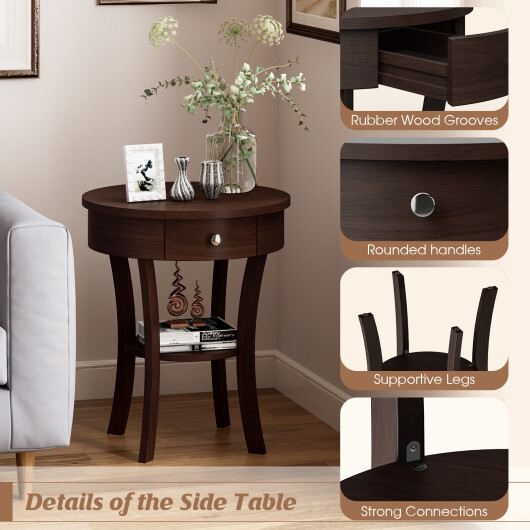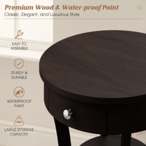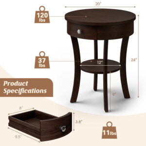 Specifications: Color Brown white Material MDF Rubber wood Overall dimension 20″ x 20″ x 24″ Net Weight 18.5 lbs Weight capacity of the drawer 17.5 lbs Weight capacity of tabletop 140 lbs Weight capacity of the shelf 37 lbs