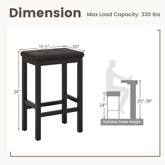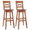 24 Inch Bar Stools with Padded Seat Footrest and Rubber Wood Frame-Brown – Color: Brown – Size: 24 inch