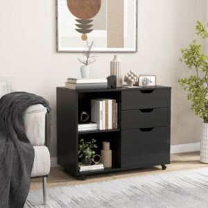 Specifications: Specification Color White/Black/Rustic Brown Material Engineered Wood MDF Overall Dimensions 32″ x 16″ x 26″ Dimensions of Right Compartment 14″ x 15″ x 23″ Interior of Small Drawer 14.5″ x 13.5″ x 4″ Interior of File Cabinet 14.5″ x 13.5″ x 9.5″ Cabinet off Ground 2″ Weight Capacity of Tabletop 155 lbs Weight Capacity of Shelf 45 lbs Weight Capacity of Small Drawer 11 lbs Weight Capacity of File Drawer 22 lbs Net Weight 50 lbs