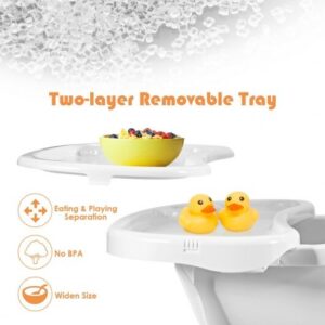 -Detachable 2-tier tray with 3 adjustable positions to fit with kids of different ages