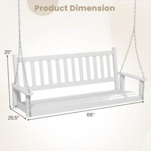 Specifications: Color: Brown/White Material: Poplar Wood + Metal Product Dimension of Swing: 66″ x 25.5″ x 25″ (L x W x H) Length of Upper Metal Chains: 5.6 ft Weight Capacity: 800 lbs Net Weight: 36.5 lbs