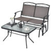 Hence it will complement your outdoor style. What is more the rustproof steel frame with sturdy X-shaped structure non-slip foot pads and durable ceramic tiles ensure strong stability and durability. And the ergonomic backrest provides comfy sitting experience. When it becomes cold outside the 2 comfy chairs can be folded which makes storage easier and saves your space.