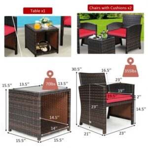 3 Pieces PE Rattan Wicker Furniture Set with Cushion Sofa Coffee Table for Garden-Red – Color: Red