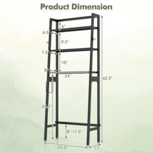 Specifications: Color Black/White Material ?Metal Item weight 20 lbs Overall Dimension 11″ x 25.5″ x 62.5″ Toilet Placement Dimension 25.5″ x34″/ 65 x 88 ( W x H ) Total Capacity 132 lbs
