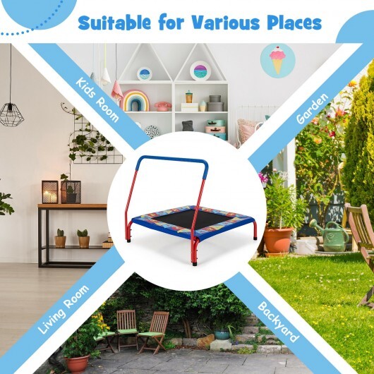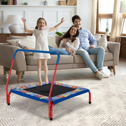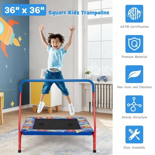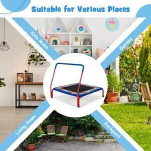 36 Inch Kids Indoor Outdoor Square Trampoline with Foamed Handrail-Blue – Color: Blue