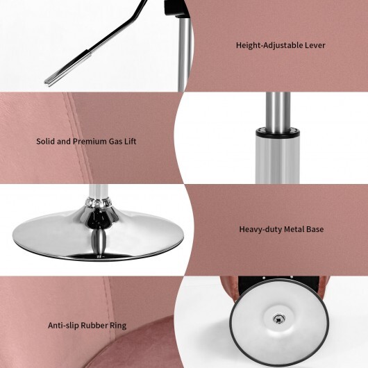 360 Degree Swivel Makeup Stool Accent Chair with Round Back and Metal Base-Pink – Color: Pink