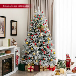 Specifications: Color Green and White Material PE PVC Flocking Metal Tree Height 4.5/6/7 ft Tree Width 3.1/4/4.3 ft Diameter of Stand 16″/18″/22″ Number of Sections 2/3/3 Number of Branch Tips 688/1022/1328 Number of LED Lights 200/350/450 Net Weight 17/25.5/34.5 lbs