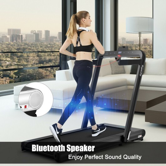 4.75HP 2 In 1 Folding Treadmill with Remote APP Control-Black – Color: Black