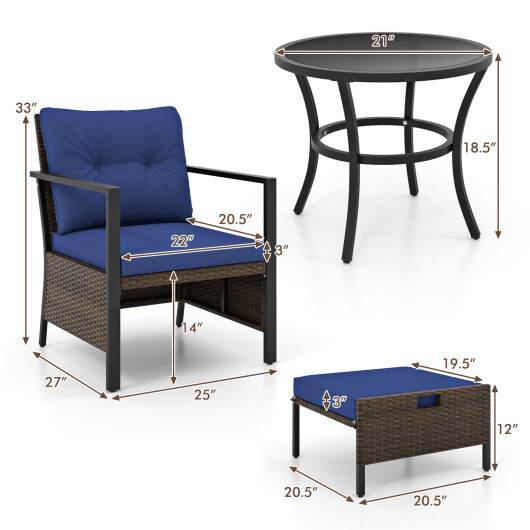 4 Piece Outdoor Furniture Set with Glass Topped Coffee Table-Navy – Color: Navy