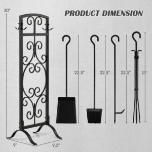 Specifications: SpecificationColor BlackMaterial IronOverall Dimension 9.5″ x 9″ x 30″Height of Poker 22.5″Height of Tong 23″Height of Brush 22.5″Height of Shovel 22.5″Net Weight 11 lbs