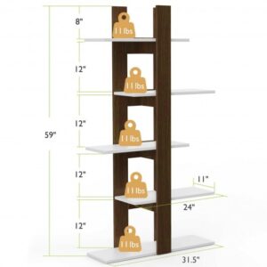5-Tier Freestanding Bookshelf with Anti-Toppling Device – Color: Brown
