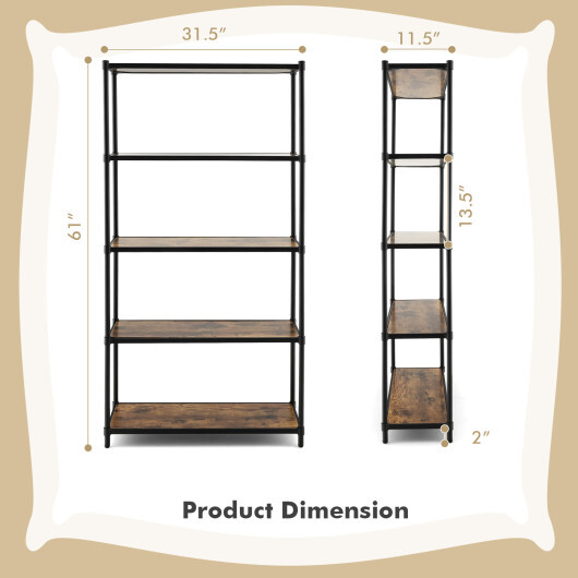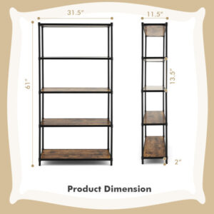 Specifications: Color Rustic Brown + Black/Maple + White Material Engineered Wood + Metal Overall Dimensions 31.5″ x 11.5″ x 61″ (L x W x H) Clearance of Each Tier 13.5″ Clearance from Floor 2″ Total Weight Limit of 5 Tiers 220 lbs Net Weight 42.5 lbs
