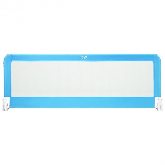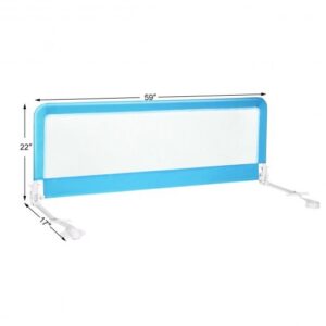 59 Inch Folding Breathable Baby Bed Rail Guard with Safety Strap-Blue – Color: Blue