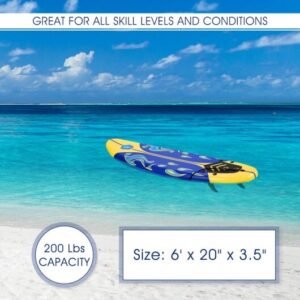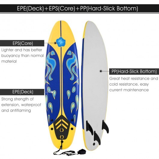 Specifications: Color: Red/Yellow/White Dimension: 72″ x 20″ x 3″(L x W x Thickness) Material: EPE(deck)+EPS(core)+PP(hard-slick bottom) Unit weight:10 lbs Weight capacity: 200 lbs Package includes: 1 x Surfboard (accessories included)