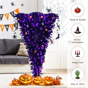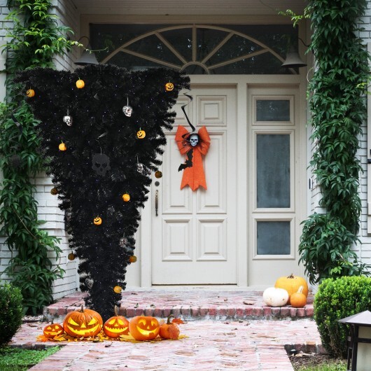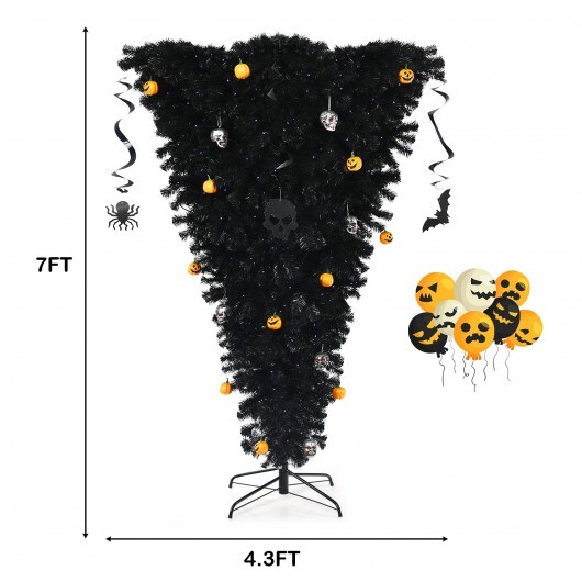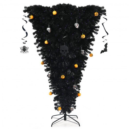 The black artificial pine tree features an upside-down design style and combined with the purple lights will bring you a new holiday experience which is spooky but full of mystery.