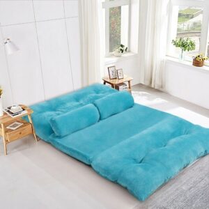 6-Position Adjustable Sleeper Lounge Couch with 2 Pillows-Blue – Color: Blue