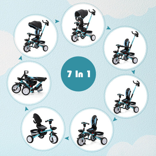 -7 In 1 baby tricycle: push stroller training trike classic trike