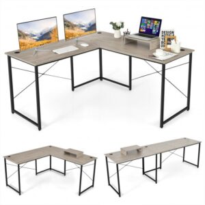 Specifications: Color Rustic Brown/Black/Gray/Natural/Brown Material Engineered wood steel Dimension of L-shaped desk 59″ x 59″ x 29″ (L x W x H) Dimension of straight desk 95″ x 24″ x 29″ (L x W x H) Dimension of monitor display shelf 16″ x 9.5″ x 4″ (L x W x H) Weight capacity of desktop 220 lbs Weight capacity of monitor display shelf 33 lb Overall weight capacity 253 lb Net weight 52.5 lbs