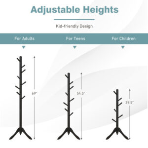 Adjustable Wooden Tree Coat Rack with 8 Hooks-Black – Color: Black