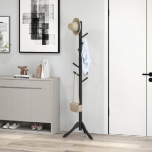 Corner Coat Rack with Top Hanger and 2 Mesh Shelves for Entryway Hallway Living Room Bedroom-Black – Color: Black