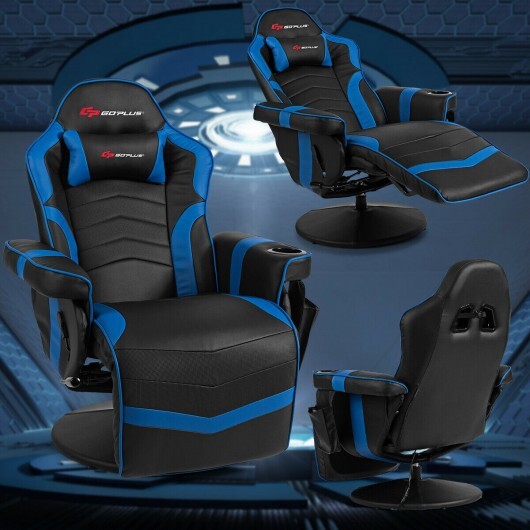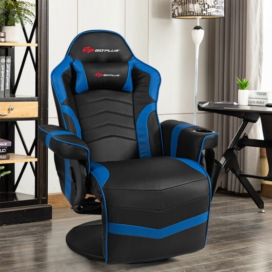 Ergonomic High Back Massage Gaming Chair with Pillow-Blue – Color: Blue
