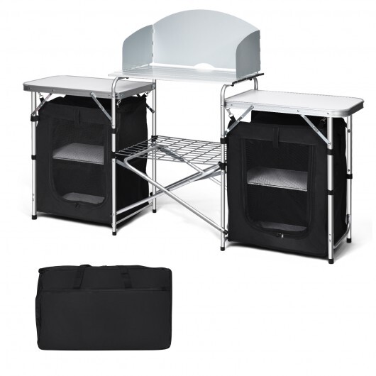 Equipped with 2 side tables and large countertop this folding grill table owns the large storing capacity for various condiments and cooking utensils.