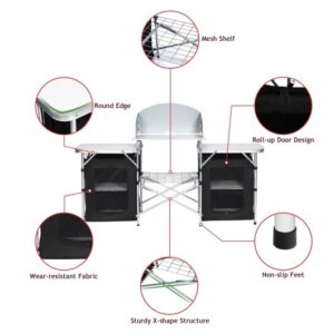 Made of high quality steel frame and oxford fabric the kitchen station is sturdy and durable for outdoor use. All parts are packed in the carrying bag perfect for outdoor activities like camping spring outing etc. With the detailed user manual you also won’t find any difficulty assembling the grill table.