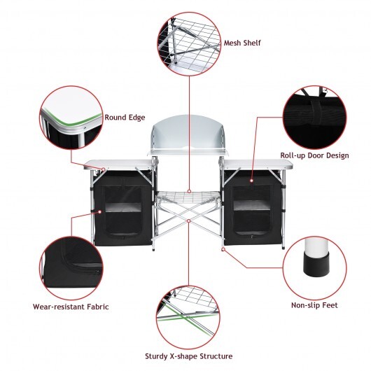 - Large heat-resistant tabletop for most stoves and coolers