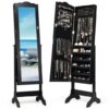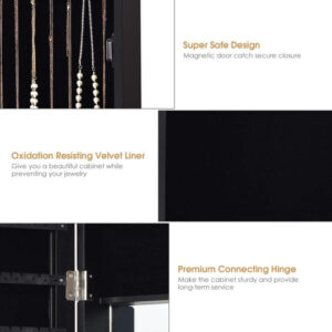 Full Length Mirror Jewelry Cabinet with Ring Slots and Necklace Hooks-Dark Brown – Color: Dark Brown